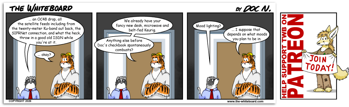If you would like to share the strip with others, please send them the URL and do not copy the strip itself, thanks. Any resemblance to persons living or dead would be an incredible, if not impossible, coincidence.